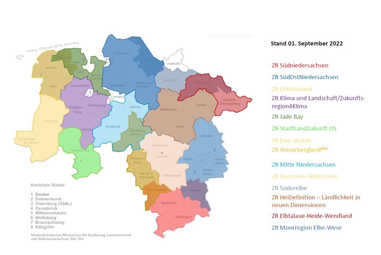Mit dem Programm „Zukunftsregionen in Niedersachsen“ unterstützt das Niedersächsische Ministerium für Bundes- und Europaangelegenheiten und Regionale Entwicklung Landkreise und kreisfreie Städte bei der kreisübergreifenden Zusammenarbeit zur Bewältigung wichtiger Zukunftsaufgaben. Insgesamt hatten sich nach dem Aufruf im vergangenen Jahr 14 Regionen als Zukunftsregion beworben.