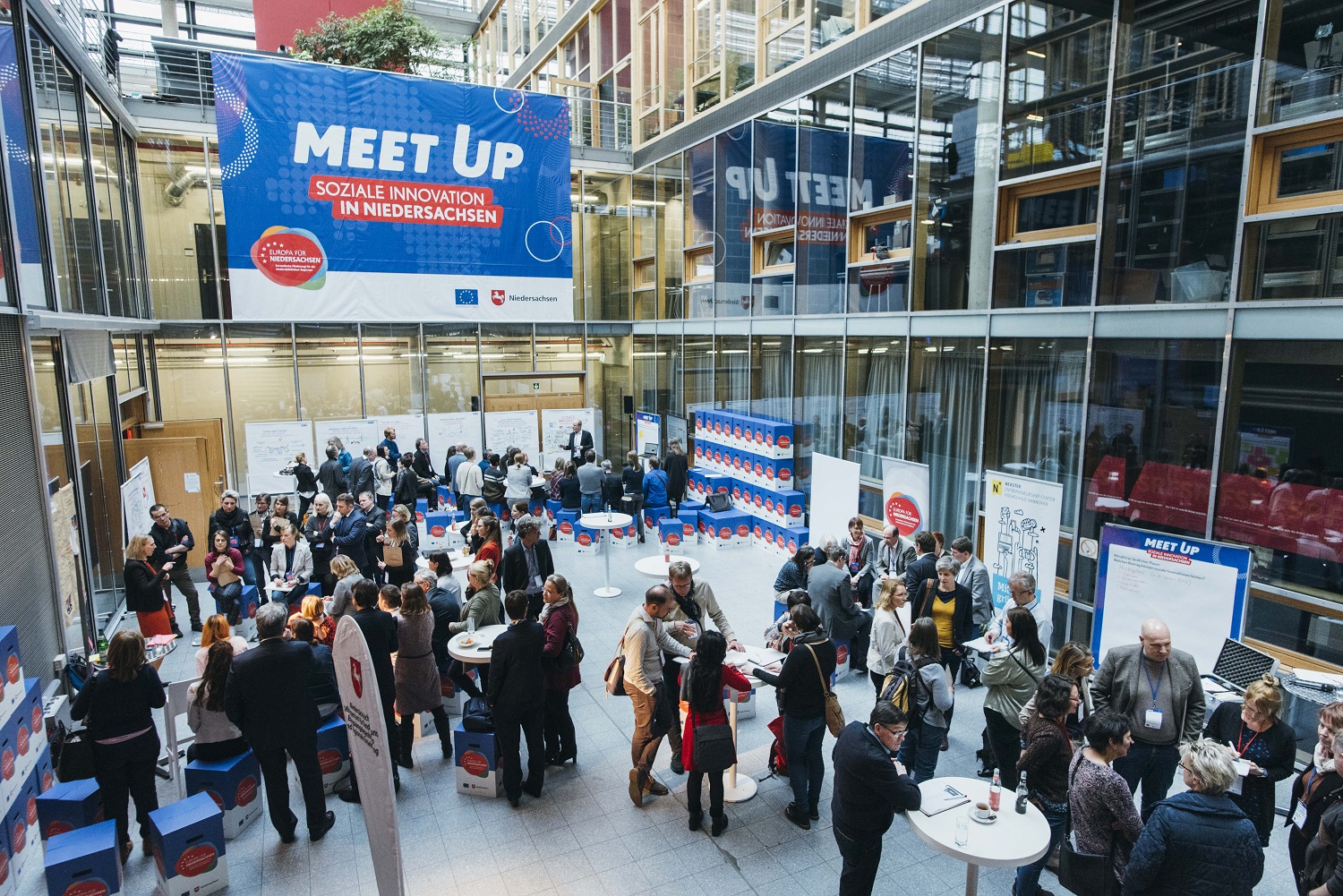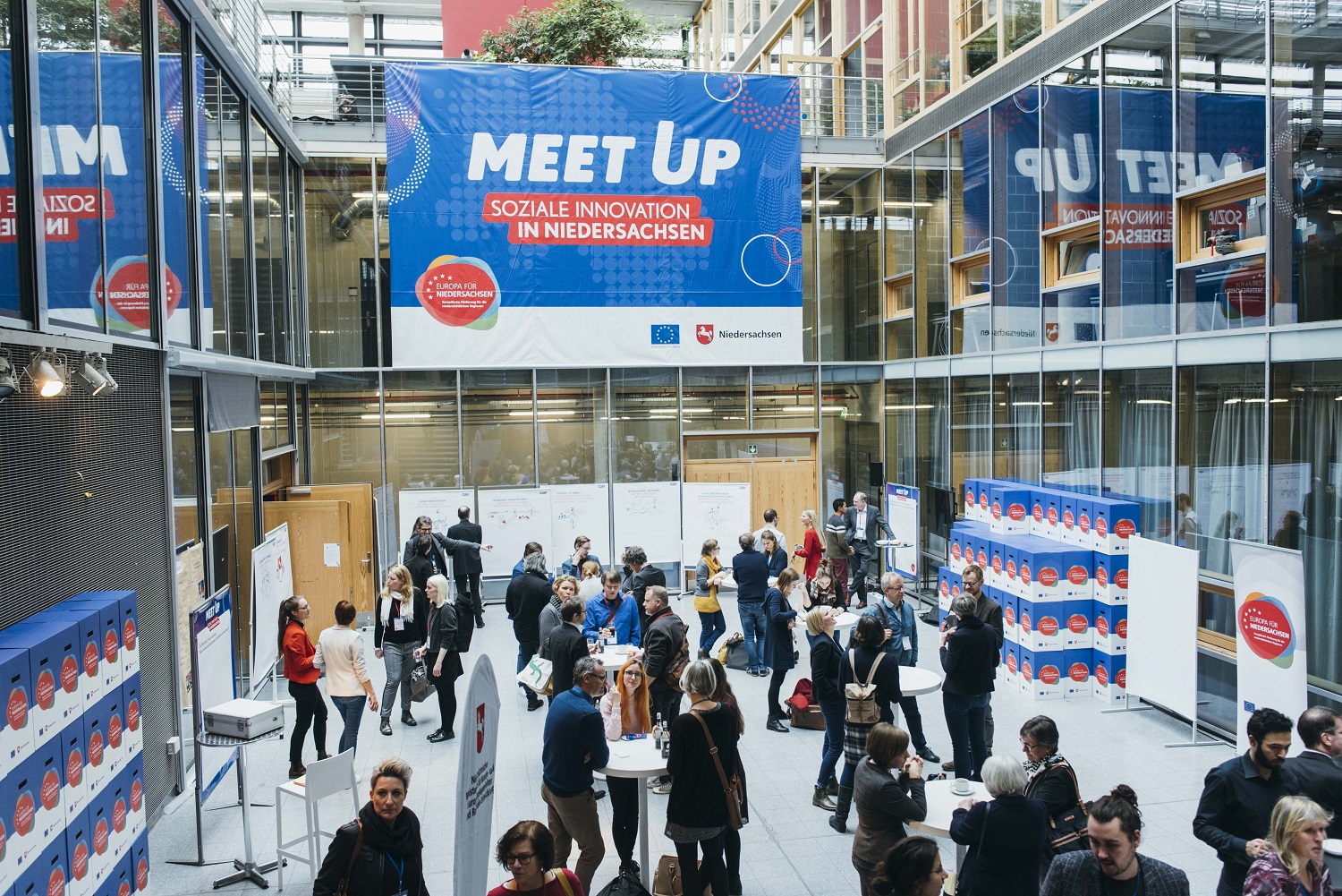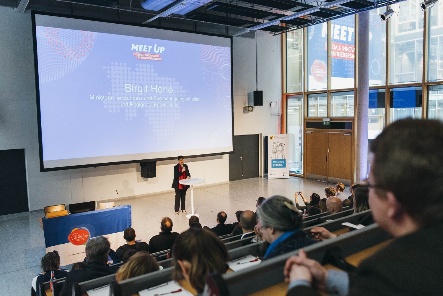 Mehr als 170 Gäste nahmen am 19. Februar an der Veranstaltung „Meet up – Soziale Innovation in Niedersachsen" in Hannover teil - in erster Linie ein Erfahrungsaustausch für Projektträger, Fachleute und Interessierte.