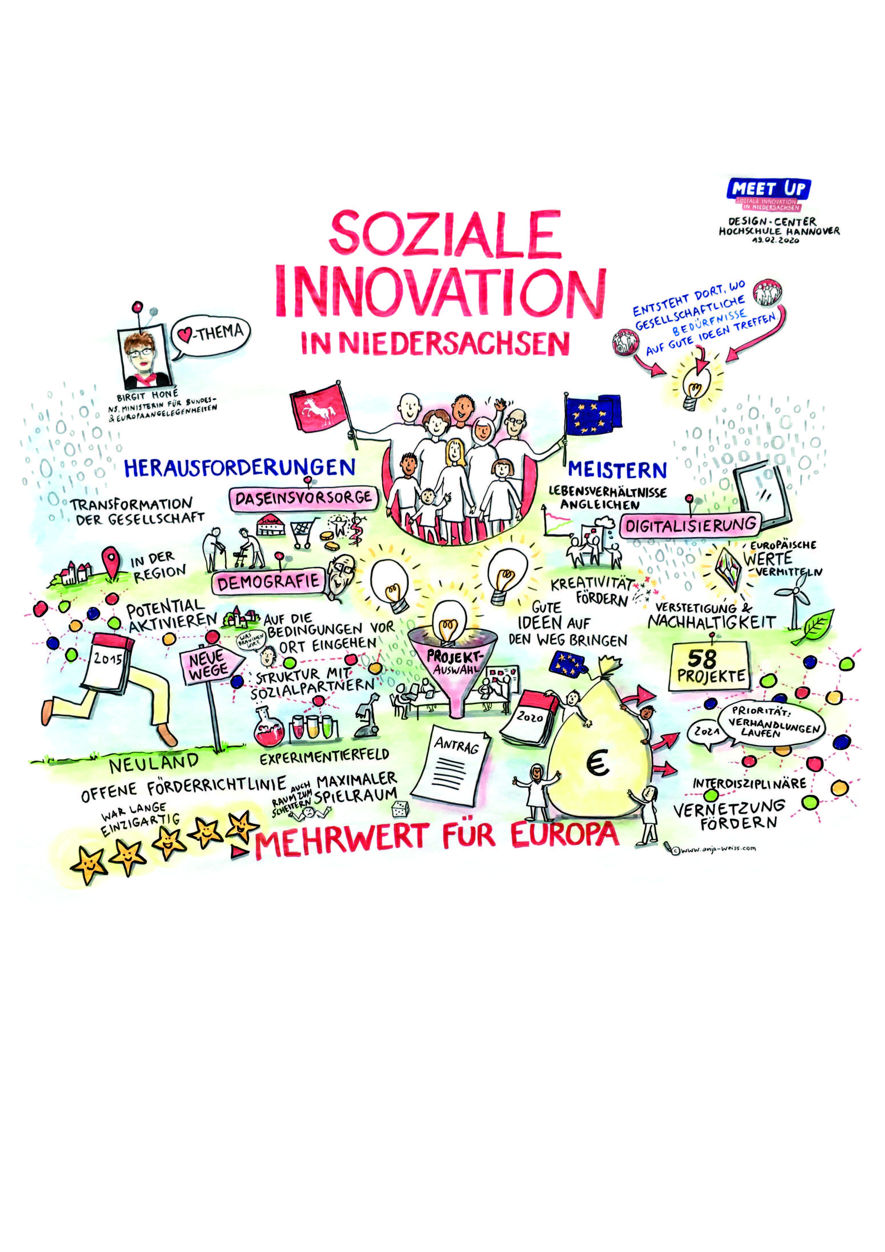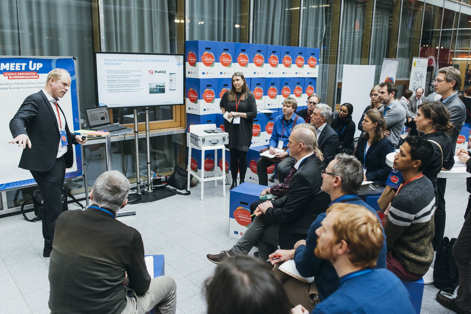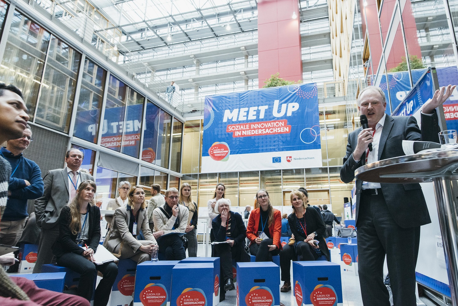 Mehr als 170 Gäste nahmen am 19. Februar an der Veranstaltung „Meet up – Soziale Innovation in Niedersachsen" in Hannover teil - in erster Linie ein Erfahrungsaustausch für Projektträger, Fachleute und Interessierte.