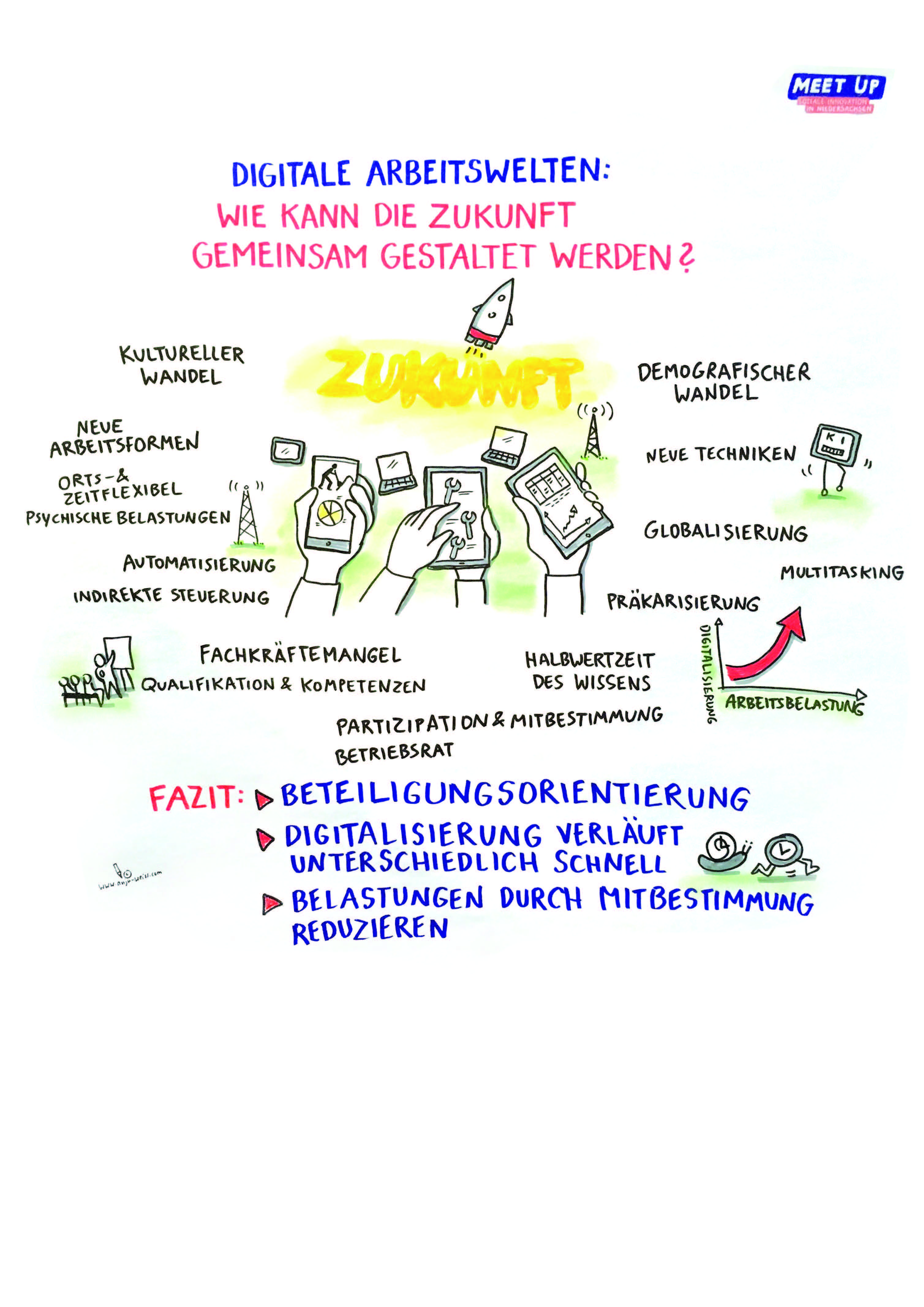 Die Themen und erarbeiteten Inhalte finden Sie im PDF-Dokument in der Infospalte sowie auf den anschaulichen Graphic Recordings der Künstlerin Anja Weiss.